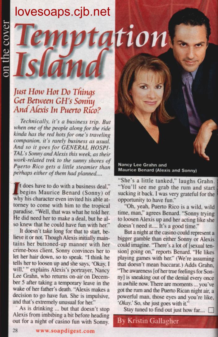 AMC - Here Comes The Baby! | OLTL - Woods Reacts To Leading Lady's Exit! | Y&R's Reeves Out! | GL - Blast From The Past | Y&R - A New Diane | AMC & GH - Shocking Shake-Ups | GL Axes Bundy! | OLTL's Natalie: Mom, I'm Home! | GH's Sonny & Alexis - Temptation Island | OLTL's Todd & Blair - Third Time's The Charm | Y&R's Tricia Is Out | No Contract For GH's Mac | PC's Arc De Triumph Leads To Big Changes On All ABC Soaps | Why A GL Script Changed | ATWT's Baby Plans | Who Is Passions' John? | DAYS - Sami And Austin Get Engaged | AMC's Roger Pinter (Roger) - Odd Exit - NEW | GH's Sonny & Courtney - Suddenly Siblings - NEW | 2002 Preview! - NEW