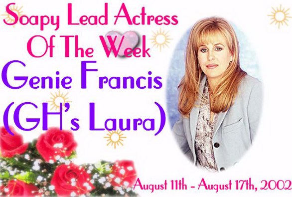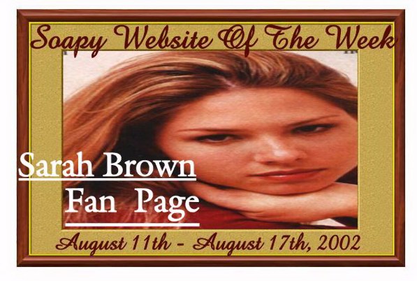 Updates On The Website | News Flash | Soapy Stars | Soapy Interviews | Bring Back Our Favorite Soap Stars | Nominations and Awards - You Decide | Soapy Romance | Star Strucked | Soapy Birthdays | Soapy Magazines | Soapy Abbrevations | Soapy Addresses | Top 50 Soap Opera Sites | Site's Awards | Polls | Chat Room | Message Board | Links | Webrings | Banner Exchange | Guests Book | Credits | Contact Me